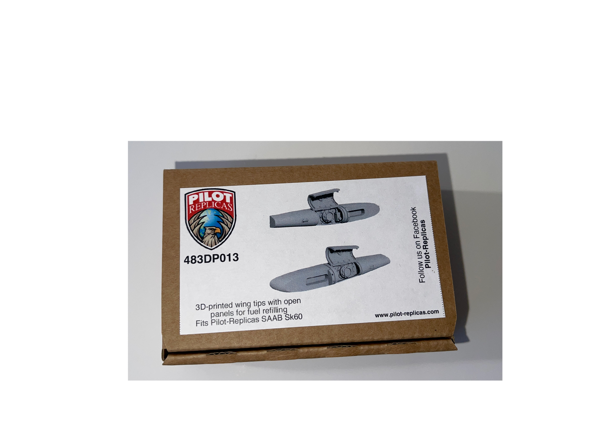 Left and Right wing tip with open hatch for refueling. 3D printed with the highest precision in one piece. Fits Pilot-Replicas SK60 in 1/48 scale